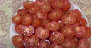 Rajčata pečlivě omyjte. Pokud jsou malá, stačí, když je rozkrojíte napůl. Pokud máte plody velké, rozdělte je na čtvrtiny. Rajčata také zbavte části, kde byla stopka.