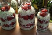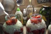Hotovým nálevem pak zalijte zpátky rajčata ve sklenici tak, aby nálev dosáhl téměř hrany sklenice. Odměřte jednu polévkovou lžíci 70% vodky nebo potravinářského lihu, nalijte ji na hladinu láku a sklenici důkladně zavíčkujte a zatáhněte.
