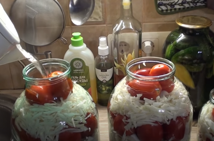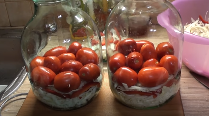 Nakládaná rajčata v zelí s mrkví a červenou paprikou - postup přípravy
