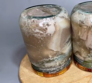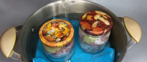 Vroucí solankou pak zalijte sklenice tak, aby byly úplně plné až po okraj. Pak sklenice zaklopte víčky, ale nedotahujte je, aby mohl vzduch volně proudit do nádoby a ven z ní. Takto připravené sklenice vyskládejte do velkého hrnce, na jehož dno jste předem položili ručník nebo utěrku složenou do čtverečku. Hrnec naplňte vodou tak, aby dosahovala asi do tří čtvrtin nádob s masem a jedna čtvrtina zůstala volně nad hladinou.