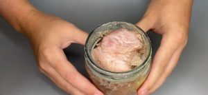 Sklenice s masem v hrnci zavařujte zhruba po dobu jedné hodiny. Poté sklenice opatrně vyjměte z vroucí lázně, s pomocí ručníku dotáhněte víčka nadoraz a vyskládejte je na stůl dnem vzhůru. Takto je nechte stát, dokud samovolně úplně nezchladnou na pokojovou teplotu.