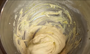 V jiné misce smíchejte hladkou mouku s práškem do pečiva, důkladně obojí promíchejte a v několika fázích zapracujte do vajíčkové hmoty. Bílky, které jste odložili stranou, vyšlehejte elektrickým šlehačem do pevné pěny. Tu pak jemně vmíchejte do těsta v míse. Ostrouhejte na jemném struhadle kůru z celého citrónu a dejte přitom pozor, abyste příliš nezajeli do bílé části slupky, která je velmi hořká a mohla by vám pokazit chuť celého moučníku. Vsypte kůru do mísy s těstem a naposledy důkladně promíchejte.