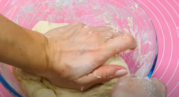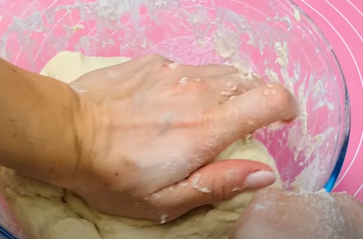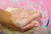 Začněte tím, že si ve velké mísy promísíte teplé mléko, teplou vodu, sušené droždí, krupicový cukr a sůl. Následně přilijte i slunečnicový olej, prosejte hladkou mouku a vypracujte nejlépe rukou homogenní a vláčné těsto polotuhé konzistence.