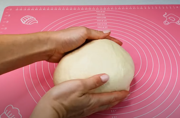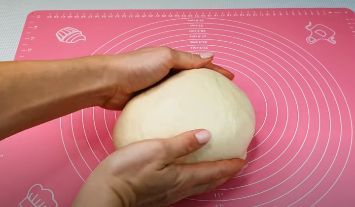 Po uplynutí doby kynutí vyjměte těsto z mísy na vál posypaný trochou mouky a rozdělte ho na dva stejně velké kusy. Vzniknou vám tak dva chleby. Každý kus těsta posléze rozválejte válečkem na tenčí plát a zarolujte jako závin.