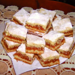 Nakonec koláč posypeme práškovým cukrem a rozkrájíme na kousky. Podáváme vychladnuté a lahodné. Dobrou chuť.