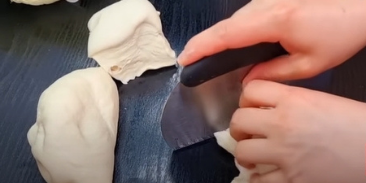Odpočaté těsto vyklopte z mísy na pracovní plochu, ručně ho trochu propracujte, vytvořte z něj válec a ten rozdělte na 8 stejně velkých dílům, ze kterých vyválejte kouličky.