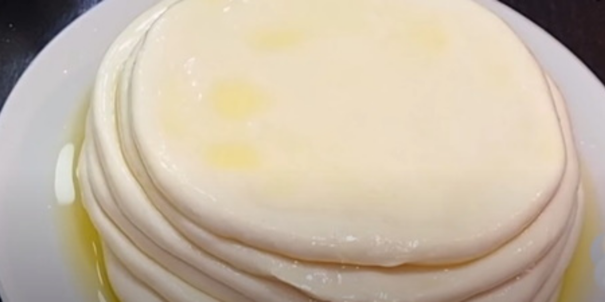 Stejně postupujte i s ostatními těstovými koulemi a placky vršte na talíř na sebe. Talíř se všemi plackami pak zakryjte potravinářskou fólií a nechte 15 minut odpočívat.