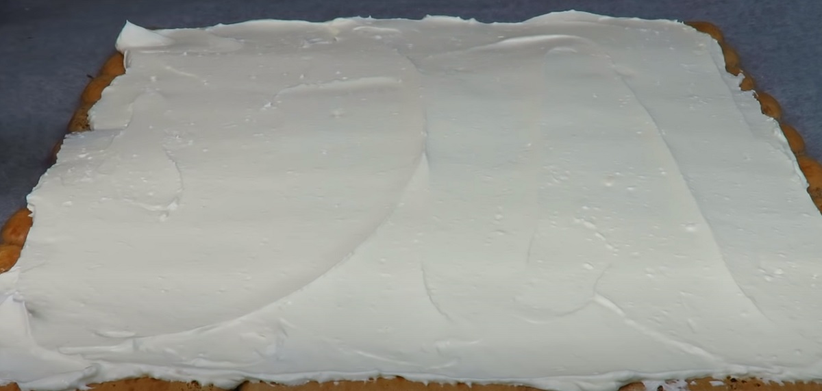 Na povrch piškotů jemně rozetřete dvě třetiny připraveného smetanového krému tak, aby rovnoměrně pokrývala celý jejich povrch.