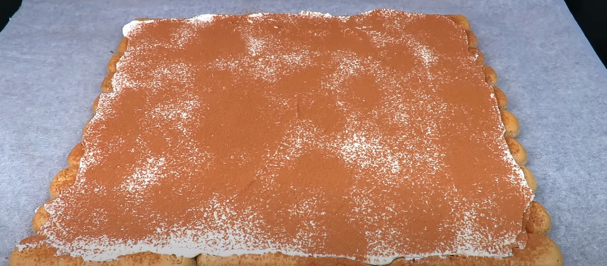 Vrstvu krému zasypejte po celé ploše přes jemné sítko kakaem.