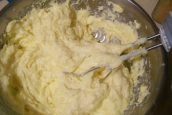 Do misky nalijte vaječné žloutky a přidejte k nim 100 gramů cukru a 2 polévkové lžíce vanilkového cukru. Míchejte, dokud se cukr nerozpustí a pak přilijte 200 mililitrů mléka, hladkou mouku a bramborový škrob. Elektrickým šlehačem vyšlehejte do hladkého a jednolitého krému.