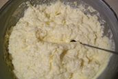 Máslo vložte do zvláštní misky a elektrickým šlehačem ho vyšlehejte do načechrané pěny. K té pak po lžících přimíchejte vychladlý pudink a nakonec strouhaný kokos a tři nebo čtyři lžíce rumu nebo rumové esence. Všechny přísady důkladně promíchejte.