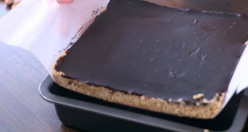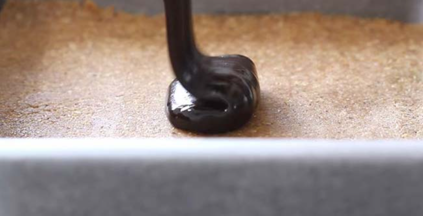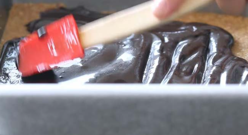 Nakonec ji přelijte čokoládovou polevou a dejte tuhnout vše do lednice na několik hodin.