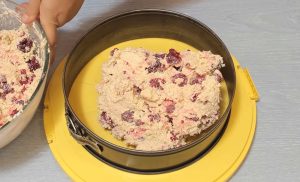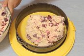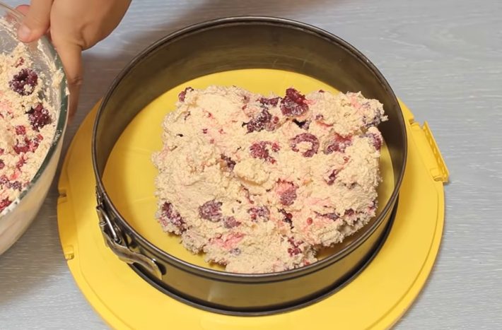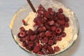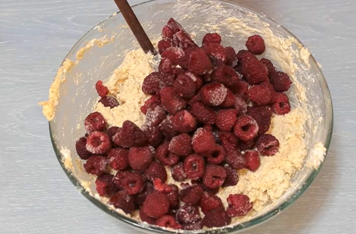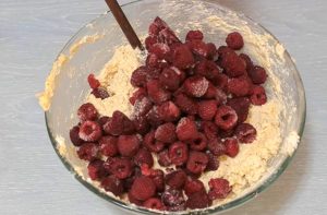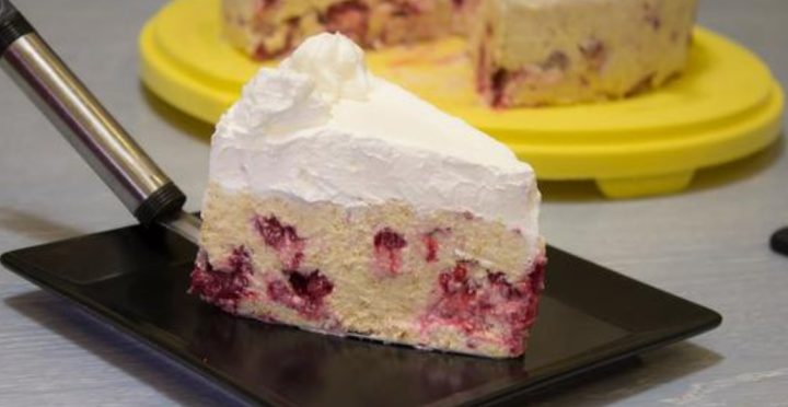Nakonec vmíchejte mražené maliny. Zarovnejte dort do formy, nechejte minimálně na hodinu zatuhnout v lednici a následně ozdobte šlehačkou nebo čímkoliv jiným (malinami, strouhaným kokosem…). Poté můžete servírovat. Dobrou chuť!