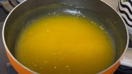 V pánvi smíchejte pomerančovou šťávu s cukrem, kukuřičným škrobem a směs vařte 2–3 minuty, do zhoustnutí. Poté ji zakryjte fólií a nechte volně vychladnout.