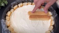Vzniklý krém vložte do dortové formy a pokryjte ho dalšími piškoty namočenými v mléce. Dezert zakryjte fólií a vložte ho aspoň na 4 hodiny do lednice.