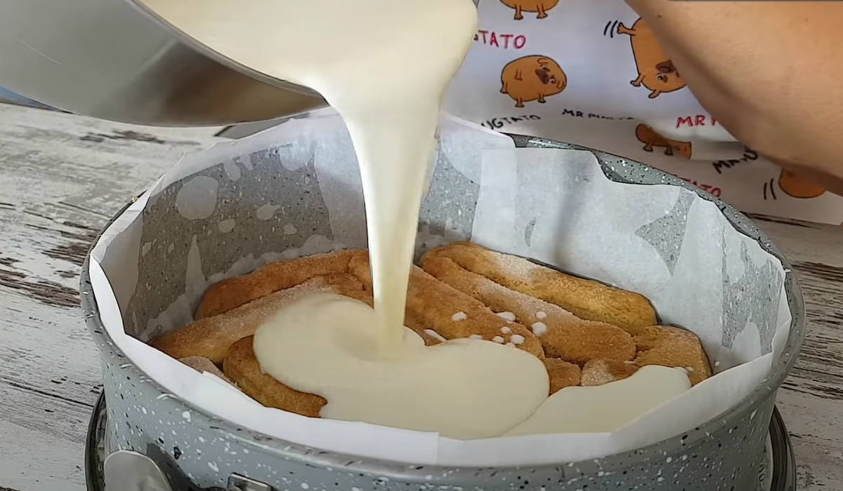 Nyní připravte silnou černou kávu a případně ji přefiltrujte od sedliny (jestliže připravujete tureckou kávu z mletých zrn, po desetiminutovém louhování ji přefiltrujte, aby nebyla moc hořká). Polovinu podlouhlých piškotů Savoiardi postupně namáčejte do kávy a vyskládejte jimi dno dortové formy.