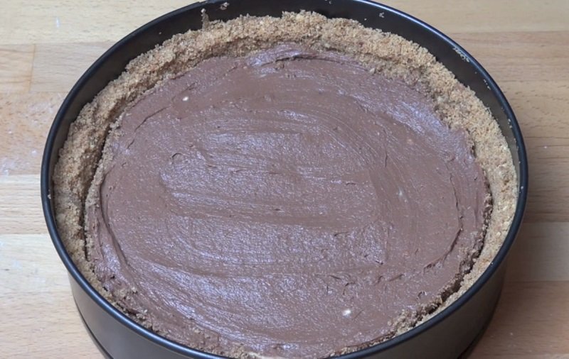 Na sušenkovou základnu vyklopte vychladlou směs nutelly a smetanového sýra a rovnoměrně uhlaďte její povrch. Hotový dort na chvíli vložte zpátky do lednice, aby se sušenkový korpus nasákl vlhkostí a příchuti se náležitě propojily. Pak můžete vyjmout ven, vyprostit dort z dortové formy, naporcovat a podávat.