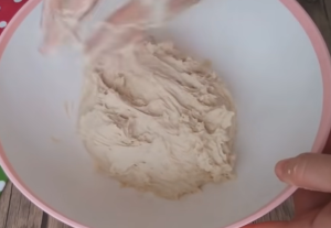 K rozpuštěným ingrediencím v míse ihned a bez čekání přisypejte tři hrnky mouky (to by mělo odpovídat váze kolem 320 gramů, finální množství ale nejspíš budete ještě upravovat podle konzistence těsta). Rukou nebo elektrickým hnětačem prohněťte všechny ingredience dohromady tak, abyste získali soudržné a lepkavé těsto. Mísu s těstem zakryjte přilnavou igelitovou fólií, popřípadě víkem nebo jen čistou bavlněnou utěrkou a nechte asi jednu hodinu na teplém místě stát a kynout. Během této doby by těsto mělo svůj původní objem nejméně zdvojnásobit.