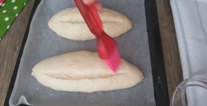 Vložte hotové šišky na plech vyložený pečicím papírem, zakryjte utěrkou a nechte 20 minut stát. Poté nožem vytvořte uprostřed mělkou rýhu, povrch potřete vodou a posypejte moukou vložte chleby do trouby vyhřáté na 200 °C. Na dno vložte nádobku s vodou a takto péct asi 45 minut dozlatova.