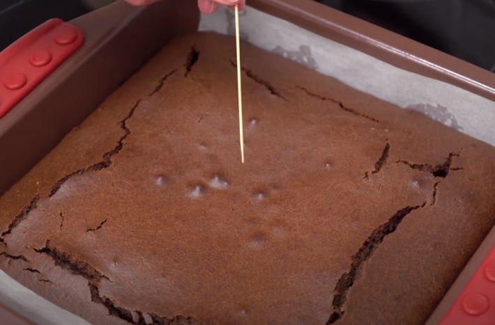Zda je těsto propečené, zjistíte s pomocí párátka, které zapíchnete do těsta. Jestliže je měkké a na špejli ulpívají kousky těsta, je třeba koláč ještě dopéct. Pokud je párátko po vytažení z těsta suché a bez kousků pečiva, máte dopečeno a můžete vypnout troubu.