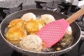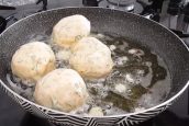 Připravte si slité a vychladlé vařené brambory vedle mísy s těstem a na kamna si postavte hlubokou pánev s vyšší vrstvou oleje.