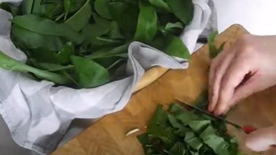Medvědí česnek důkladně properte a nasekejte ho na menší kousky, jejichž část vložte do nádoby mixéru, kde je zalijte 100 ml oleje. Směs rozmixujte a postup opakujte, dokud budete mít ingredience.