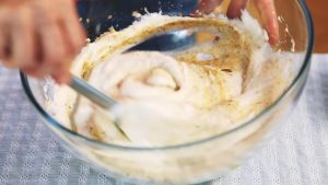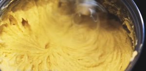 Nyní připravte krém. Do kastrůlku nalijte 2 lžíce mléka, přidejte k němu škrob a vyšlehejte metličkou do hladké konzistence. Přidejte ještě trochu mléka, znovu směs rozmíchejte, a nakonec přilijte i zbylých 200 ml mléka. Pak směs postavte na kamna a na středním ohni směs chvilku povařte. Mezitím v misce smíchejte žloutky se 100 gramy cukru a když získáte pěnivou konzistenci, přidejte vajíčko do houstnoucí mléčné směsi na kamnech. Dobře vše promíchejte, znovu přiveďte k varu, sundejte z plotny a přidejte dvě lžíce kávového sirupu. Ještě jednou zamíchejte a nechte vychladnout. V misce vyšlehejte samostatné máslo do pěny a zapracujte ho do vychladlého krému.