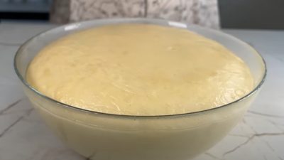 Mléko smíchejte s cukrem a sušeným droždím. Směs nechte pár minut reagovat a poté do ní vmíchejte rozpuštěné máslo s vejcem, vaječným bílkem, moukou a solí.