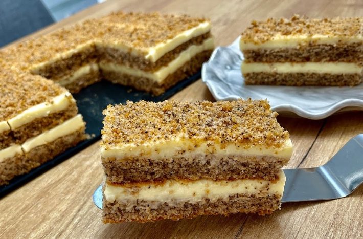 Ořechové řezy s vanilkovým krémem - postup přípravy