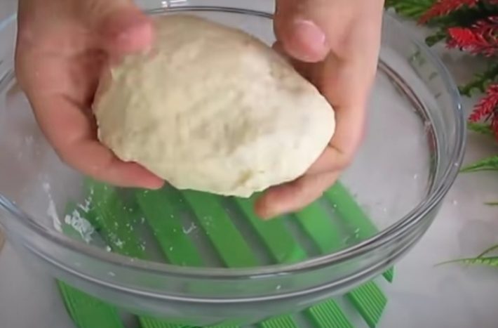 Do mísy dejte všechny ingredience na těsto a zpracujte rukou, aby bylo hladké a nelepilo se. Těsto zabalte do fólie a dejte ho na hodinu do lednice.