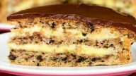 2. Těsto nalijte do vymazané a moukou vysypané dortové formy o průměru 22 centimetrů. Vložte formu do trouby předem vyhřáté na 180 °C a pečte korpus tak dlouho, dokud těsto neulpívá na špejli.