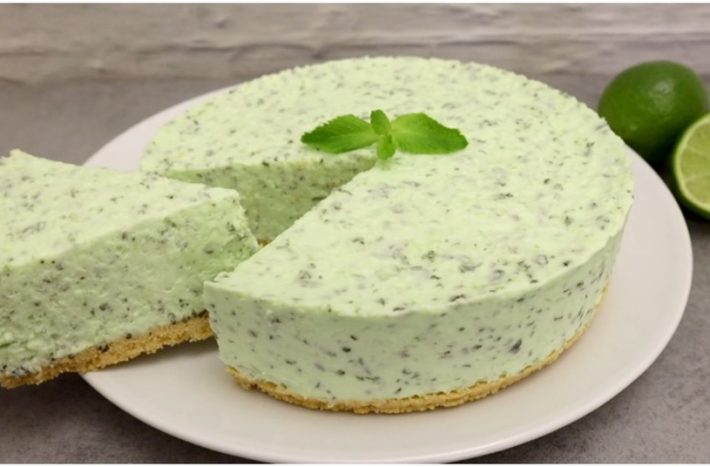 Posléze osvěžující dezert s příchutí Mojita vyjměte z chladničky, pokrájejte na menší porce a servírujte třeba s šálkem kávy.