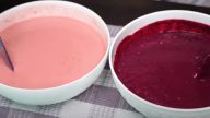 Do jahod vmíchejte rozpuštěnou želatinu a pokračujte s přípravou borůvkové směsi, při které postupujte stejně, jako u jahod.