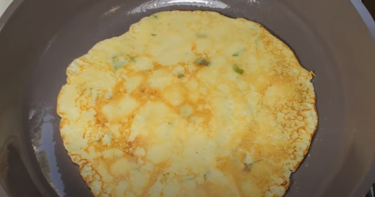 Palačinku potřete tenkou vrstvou náplně, nechte propéct a poté ji opět obraťte a dopečte.