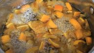 Tekutinu vařte 2–3 minuty, dokud se cukr nerozpustí a poté do ní vmíchejte nakrájený pomeranč s citronem.