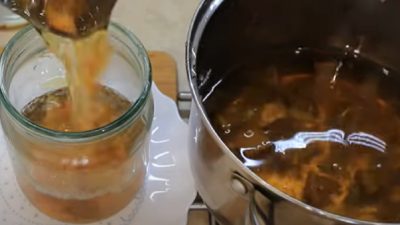 Pokračujte ve vaření dalších 40–45 minut a poté pampeliškový džem přelijte do sterilizovaných sklenic, které uzavřete.