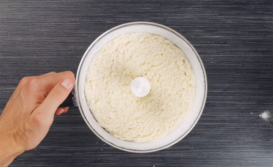 Do misky nasypejte hladkou mouku a přidejte na kostky pokrájené změklé máslo. Pomocí mixéru pak z těchto dvou surovin vymixujte drobivé těsto.