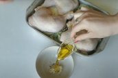 Dále si oloupejte česnek a rozmělněte jej na struhadle. Smíchejte jej s olejem a výslednou směsí pomažte kuřecí stehna. Získají další chuťový rozměr a také vytvoří nádherně křupavou kůrčičku.