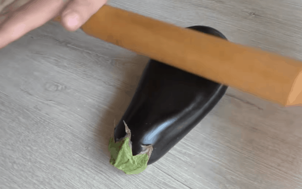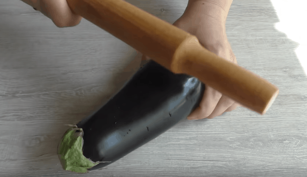 Lilky z jedné strany podélně nařízněte ostrým nožem. Vezměte váleček a opatrně lilky ze všech stran potlučte tak, abyste rozbili dužninu, ale neprotrhli slupku.