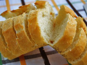 Nyní nakrojte chléb na plátky, aniž byste prořízli bochník.