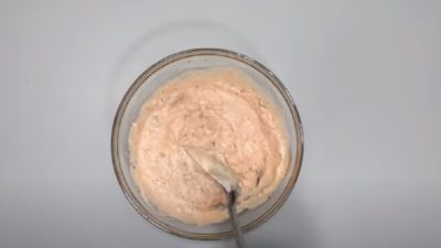 Tatarku smíchejte s kečupem, nadrobno nakrájenou cibulí, prolisovaným česnekem, nasekaným koprem, solí a pepřem.
