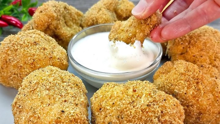 Každou růžičku květáku obalte v mouce, poté v rozšlehaných vejcích a nakonec ve směsi se strouhankou. Květák vyskládejte na plech, pokrytý pečicím papírem a pečte ho v předehřáté troubě na 200 °C po dobu 20–40 minut, dozlatova.