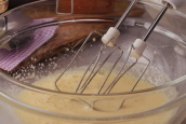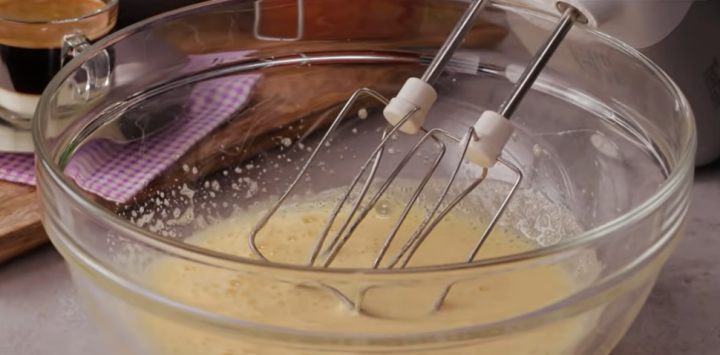 Vezměte si formu na pečení, nejlépe o rozměrech 8 x 26 centimetrů, o dostatečné hloubce. Pokud je silikonová a nepřilnavá, následující krok vynechte. Pokud není, vymažte ji kouskem másla a vysypte moukou, abyste zabránili připalování. Do mísy si rozklepněte dvě vajíčka a začněte s přípravou těsta. K vejcím přidejte klasický a vanilkový cukr, vezměte ruční mixér a začněte důkladně šlehat, aby se ingredience propojily.