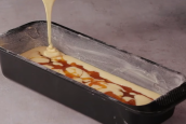 Později přidejte také olej a mléko. Následně do mísy zamíří také mouka a prášek do pečiva. Do ruky vezměte znovu mixér a mixujte. Vytvořte jednotné vláčné a nadýchané těsto, které bude bez hrudek. Takto připravené těsto nalijte do vaší pečicí formy. Ale pouze cca. polovinu, druhou část upotřebíte později. S formou několikrát zaklepejte, aby se těsto dostalo do všech záhybů.