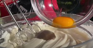 Oddělte žloutky a bílky ze 4 vajec. Do mísy k bílkům přidejte špetku soli a začněte je šlehat. Když začnou pěnit, zašlehávejte postupně cukr, dokud nebudete mít tuhý sníh. Do něho poté zašlehejte olej a nakonec postupně jeden po druhém i žloutky. Na sníh prosejte mouku s vanilkovým cukrem a práškem do pečiva. Opatrně ale pečlivě pomíchejte, těsto musí zůstat nadýchané.