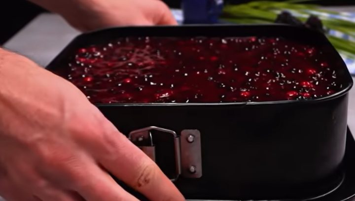 Vezměte si další piškoty, opět je namáčejte v mléce a poklaďte je na pudinkovou směs. Do větší misky nalijte vodu a nasypejte moučkový cukr s kukuřičným škrobem. Důkladně promíchejte metličkou. Do hrnce nasypejte veškeré borůvky a zalijte je směsí, kterou jste před chvílí vytvořili. Nemusíte se omezovat jen na borůvky, klidně použijte i jiné lesní ovoce. Přiveďte směs k varu a borůvkovou náplní zalijte celý dort.