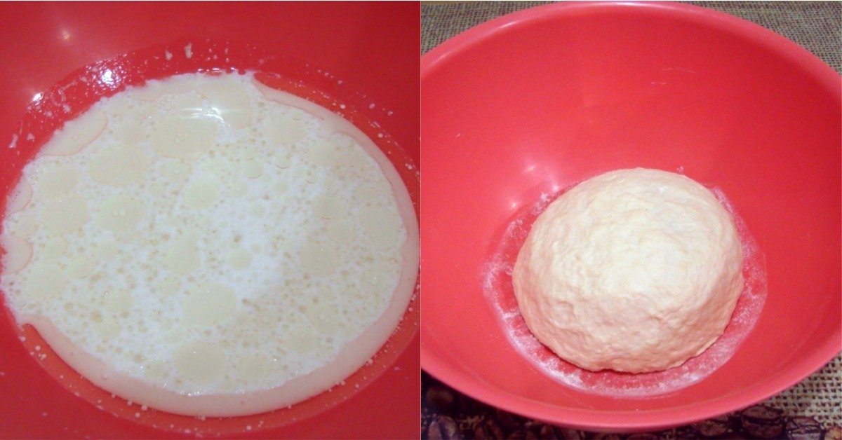 Nejprve se pusťte do výroby těsta na pizzu. V mikrovlnce si mírně zahřejte mléko a vlijte jej do velké mísy. Pak do něj rozdrobte droždí a zasypte cukrem. Nechte vzejít kvásek po dobu pěti minut. Posléze přisypte sůl a vlijte slunečnicový olej. Na závěr prosejte ke směsi hladkou mouku a rukama vypracujte vláčné a hladké těsto. To přikryjte utěrkou a nechte kynout na teplém místě po dobu jedné hodiny.