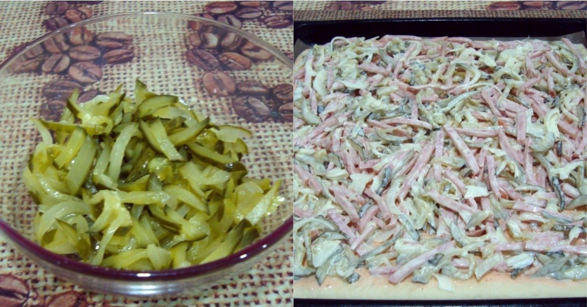 Pizza s kyselými okurkami a klobáskou - postup přípravy