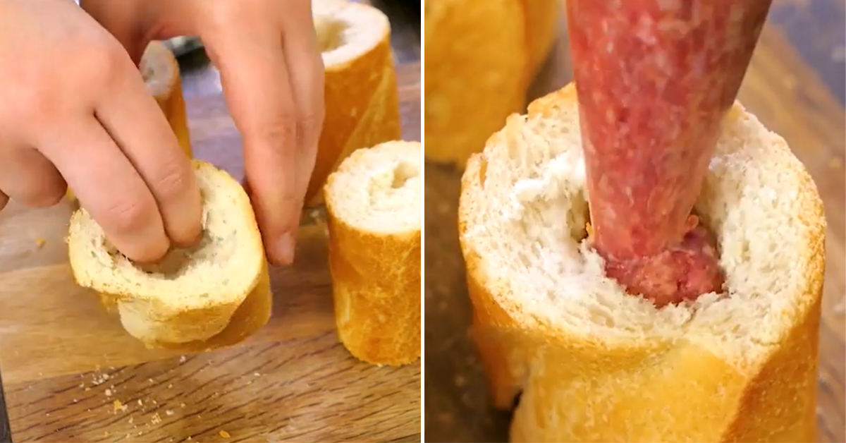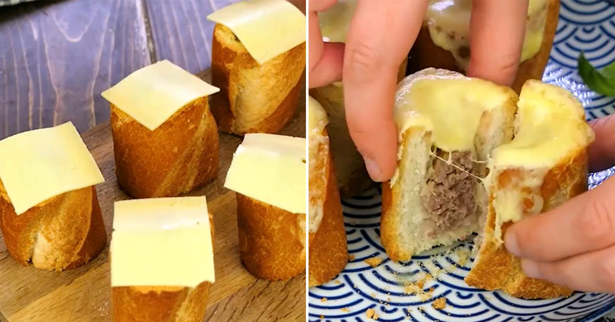 Otvory v bagetě naplňte mletým masem. Vložte jednotlivé kousky do pekáče a pečte je v předehřáté troubě na 180 °C po dobu 15 minut. Následně každý kus bagety zakryjte plátkem tvrdého sýra a dejte je ještě na dalších 10 minut zapéct. Bageta bude krásně zlatavá, sýr na povrchu roztečený a vnitřní náplň šťavnatá.