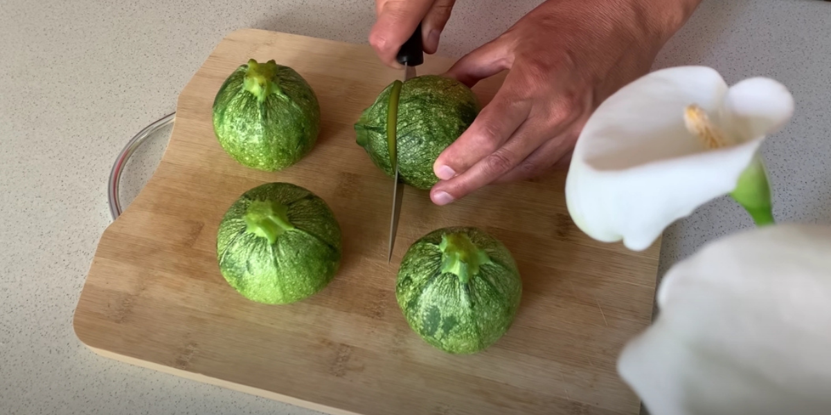 Až budou cukety uvařené, vyjměte je z vody, nechte zchladnout a poté u každého kusu odkrojte vršek (cca 2 cm). Ten bude tvořit jakýsi poklop.